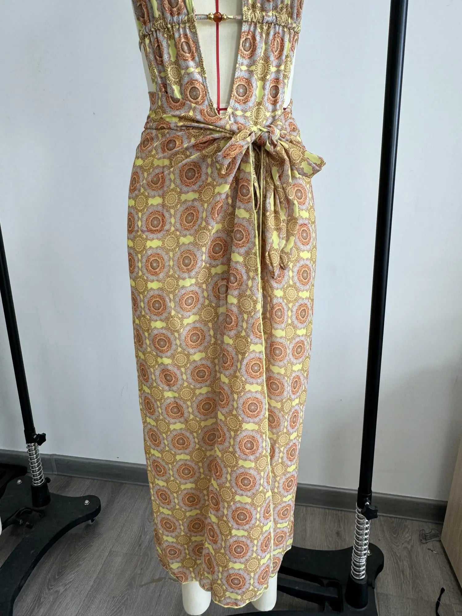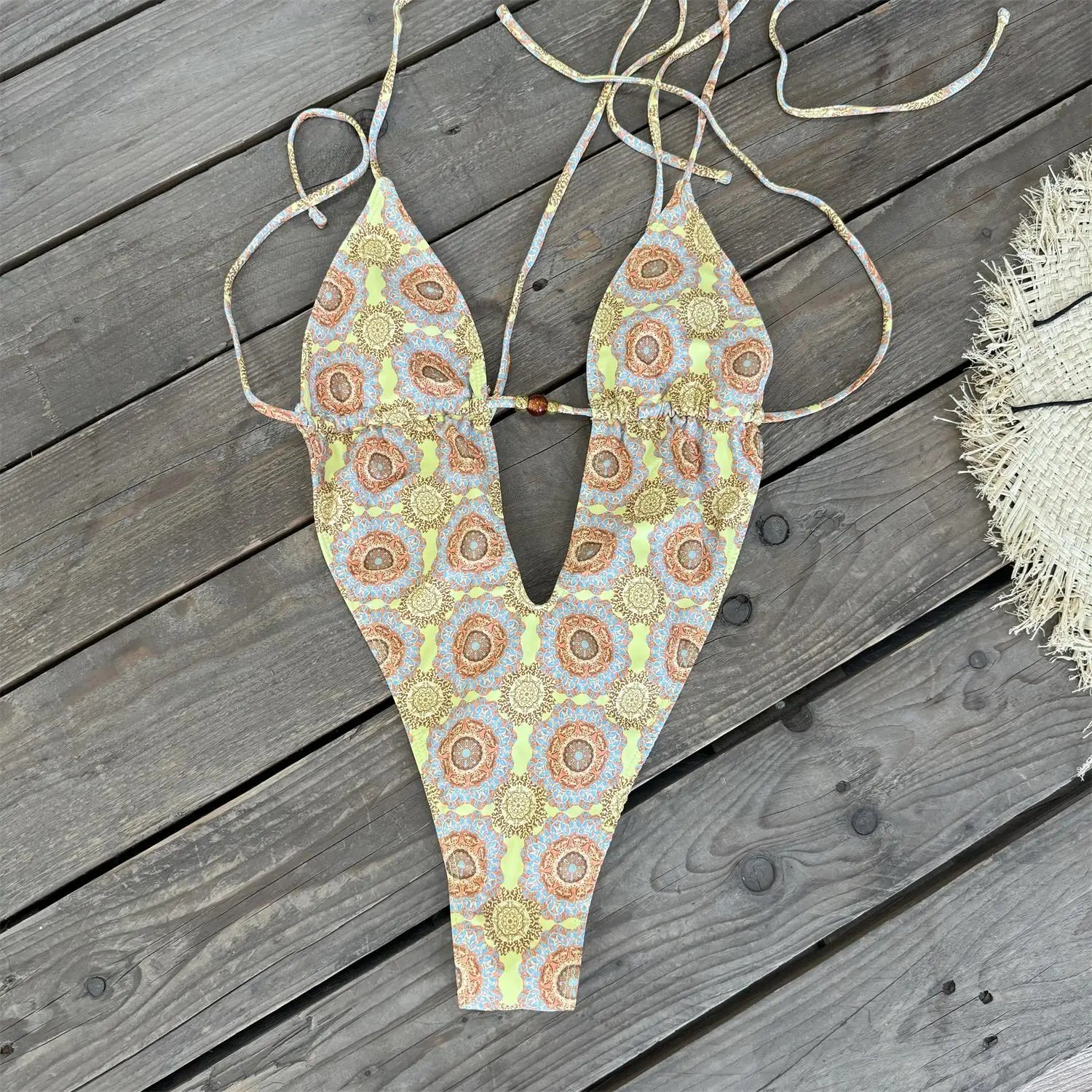 2025 New High Quality Elegant One Piece Swimsuit And Skirt Print Deep-V Lace-up Women Bikini Set Swimwear Party Bathing Suit