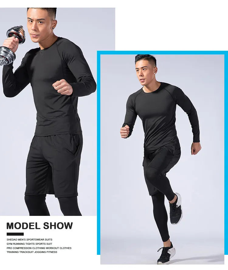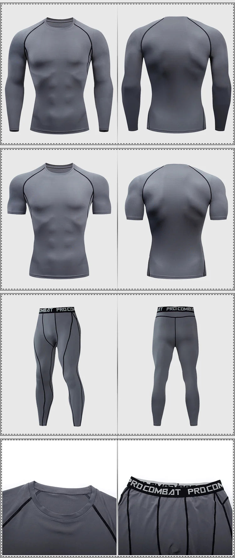 2pcs Men's Compression Sportswear Suit GYM Tight Sports Yoga Sets Workout Jogging MMA Fitness Clothing Tracksuit Pants Sporting