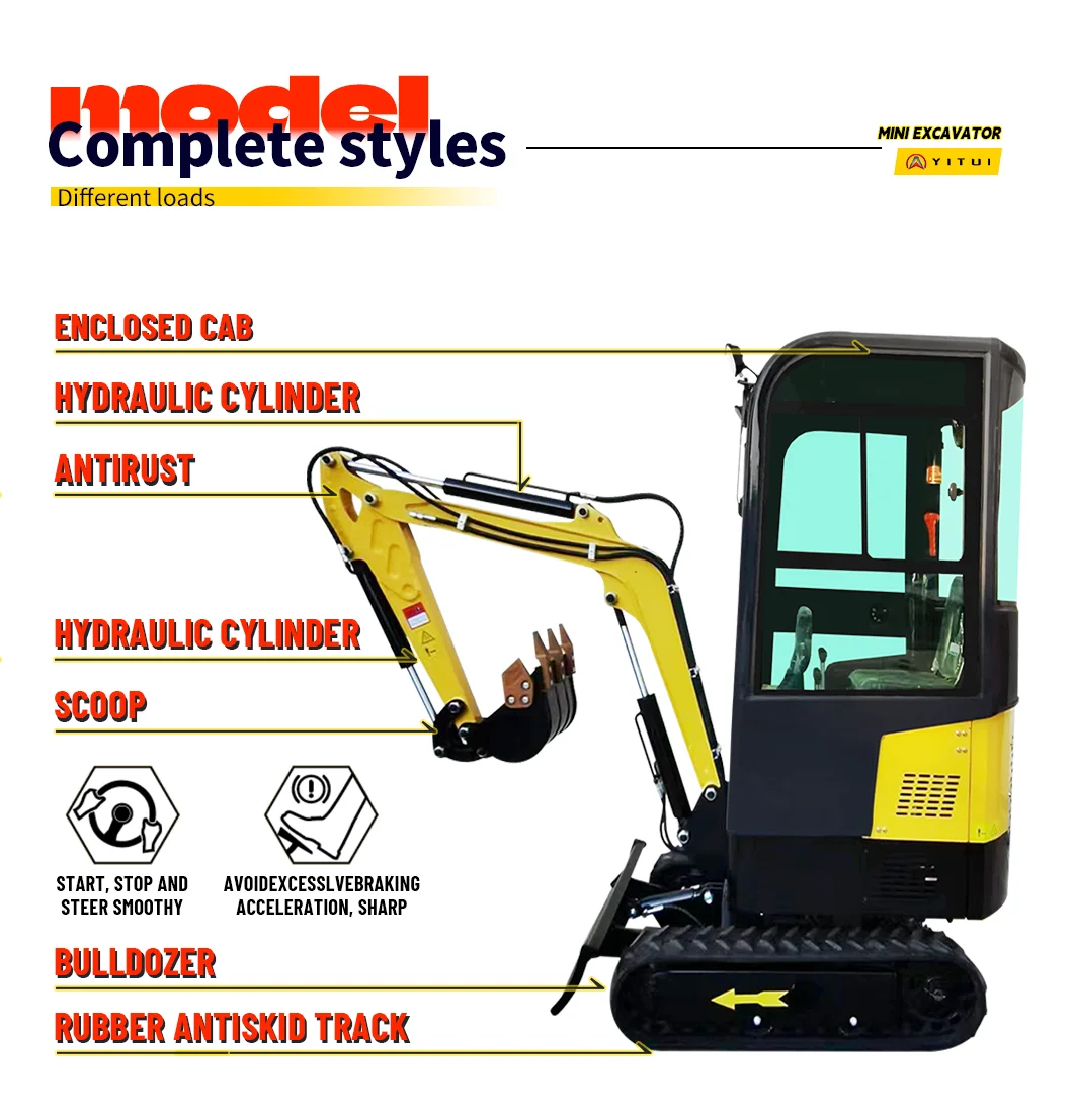 Factory Direct Sales 1.2 Ton Mini Crawler Excavator EPA EURO5 Engine Hydraulic Excavator Agricultural Excavator Customized Sale