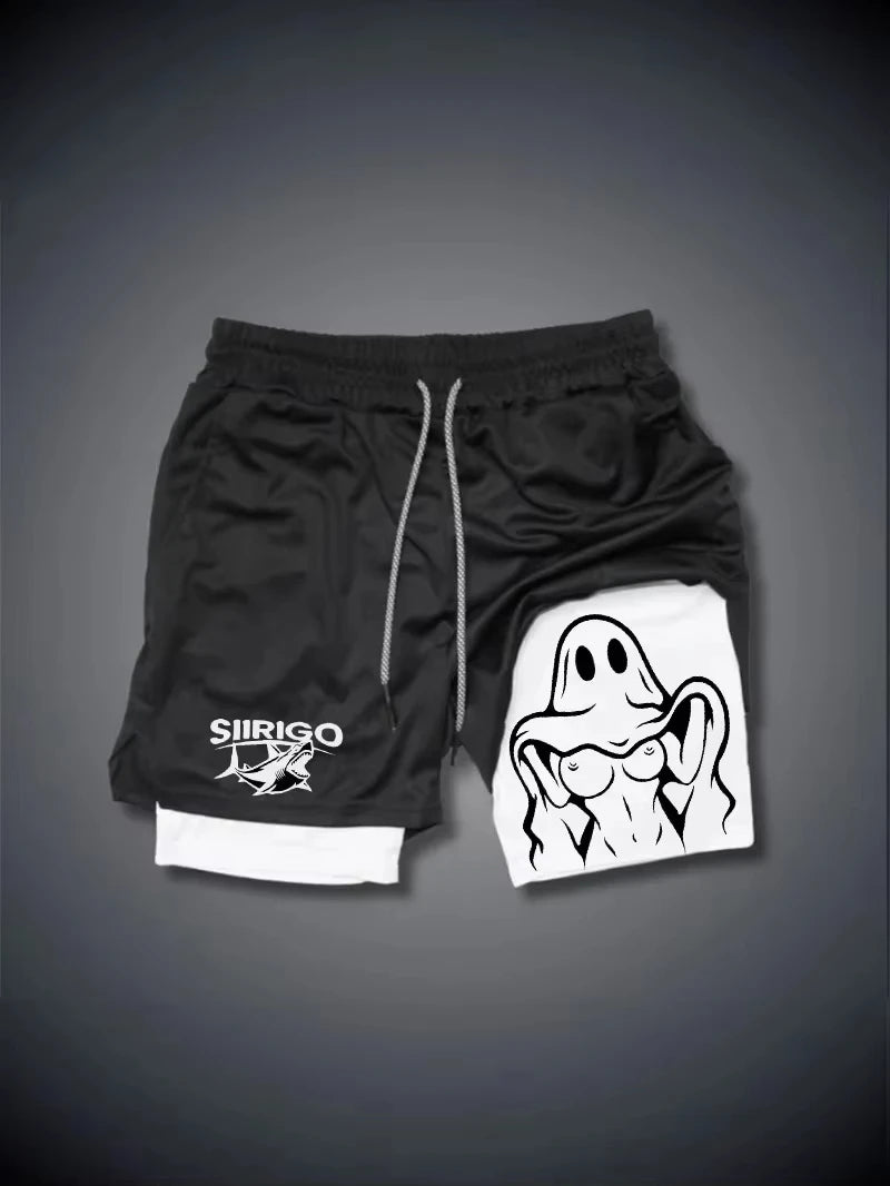 Fashionable double layer fitness shorts men's summer slim fitness quick dry breathable shorts men's sports and fitness apparel
