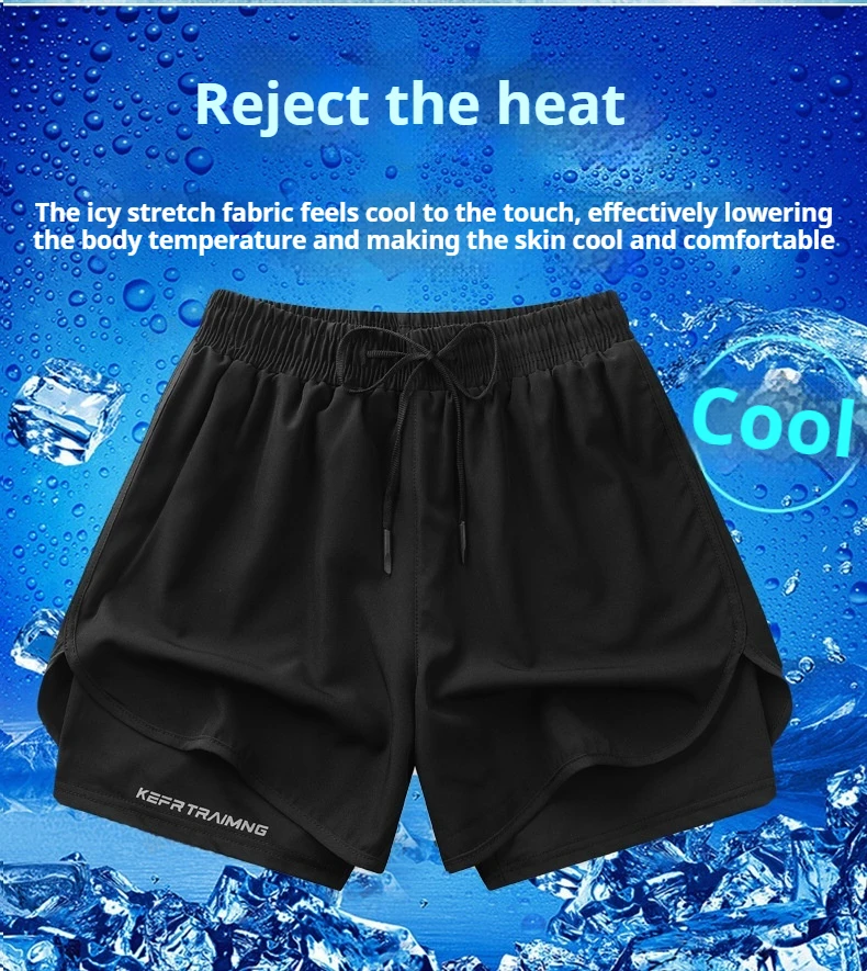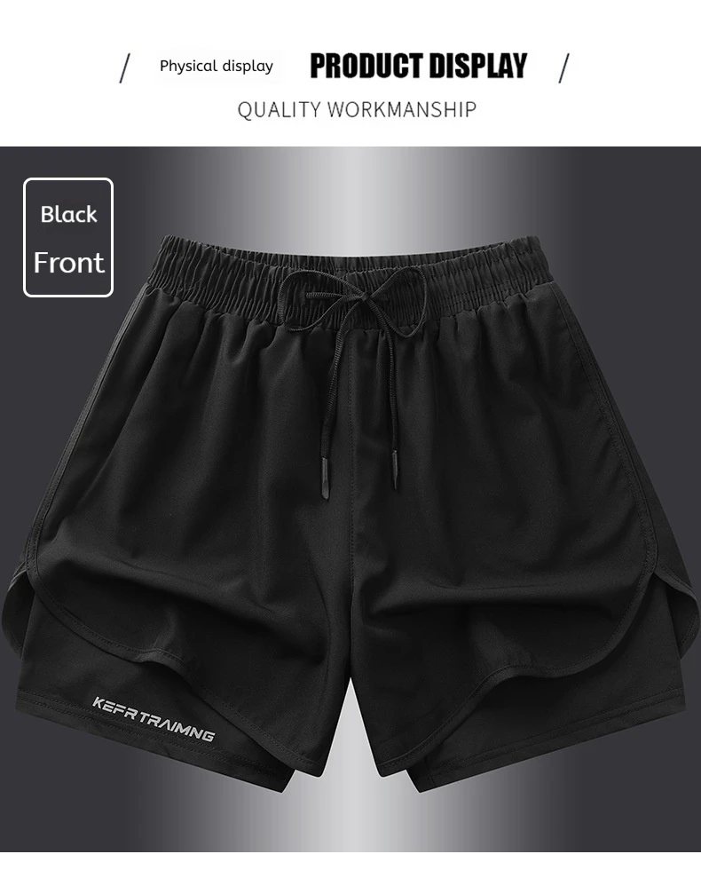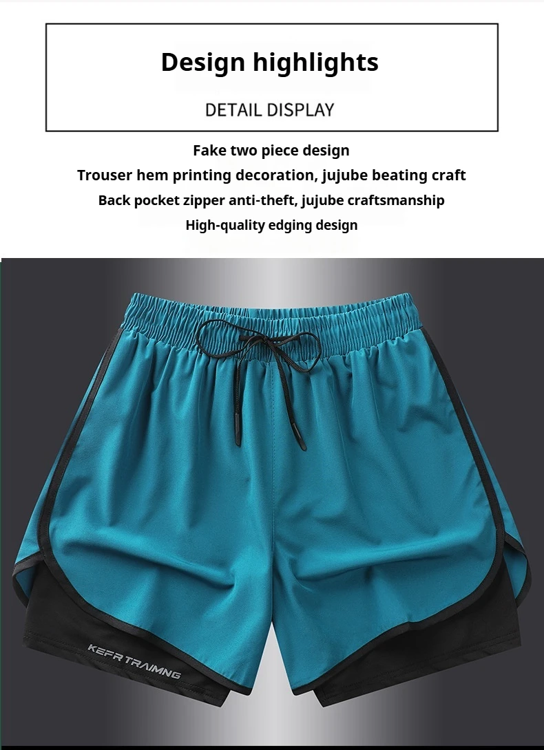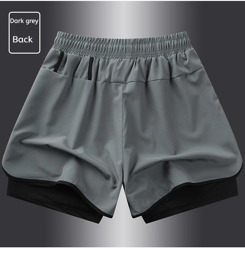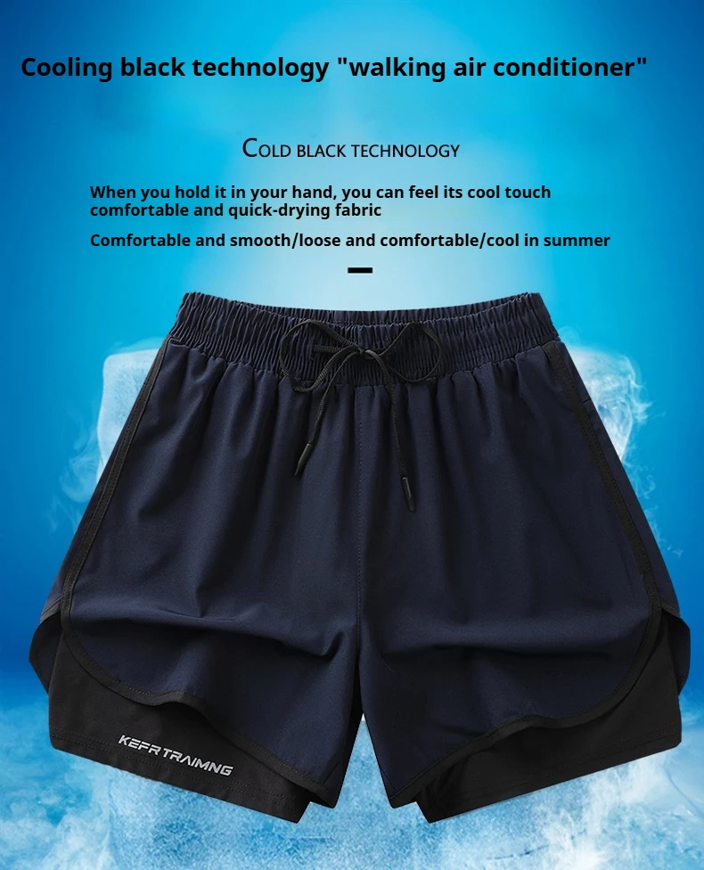 Men's Summer Hot-selling Anti-exposure Double-layer Sports Casual Shorts Running Fitness Three-quarter Pants