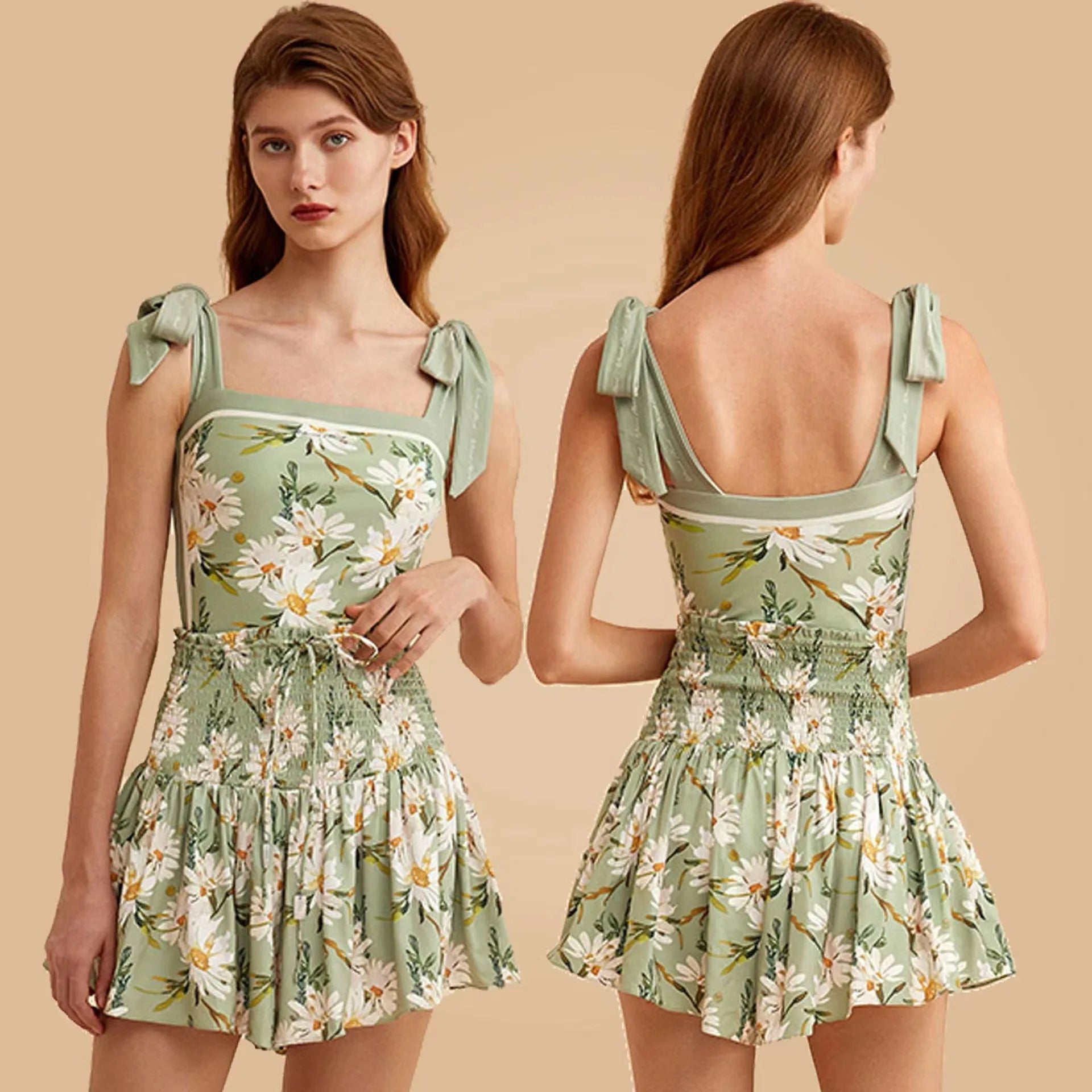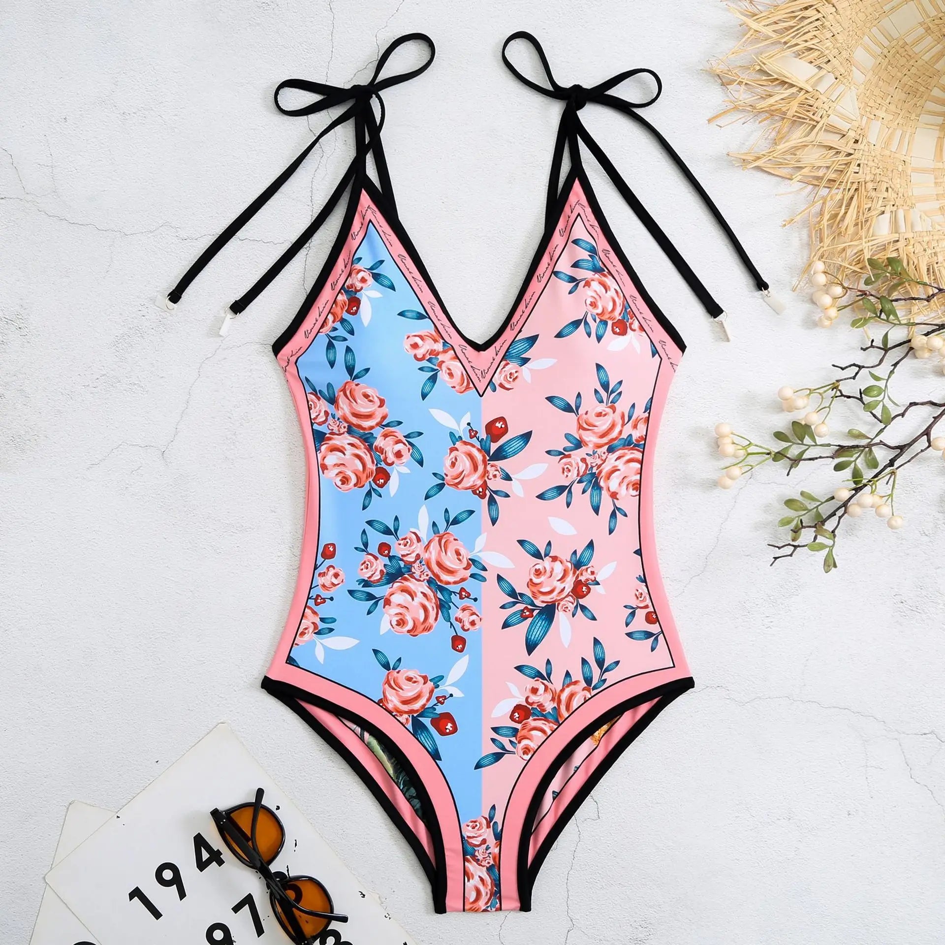 New Vintage Printed Double-sided Wear Swimming Bathing Suit Women Bandage Sexy One Piece Swimsuit Beachwear Swimwear Woman
