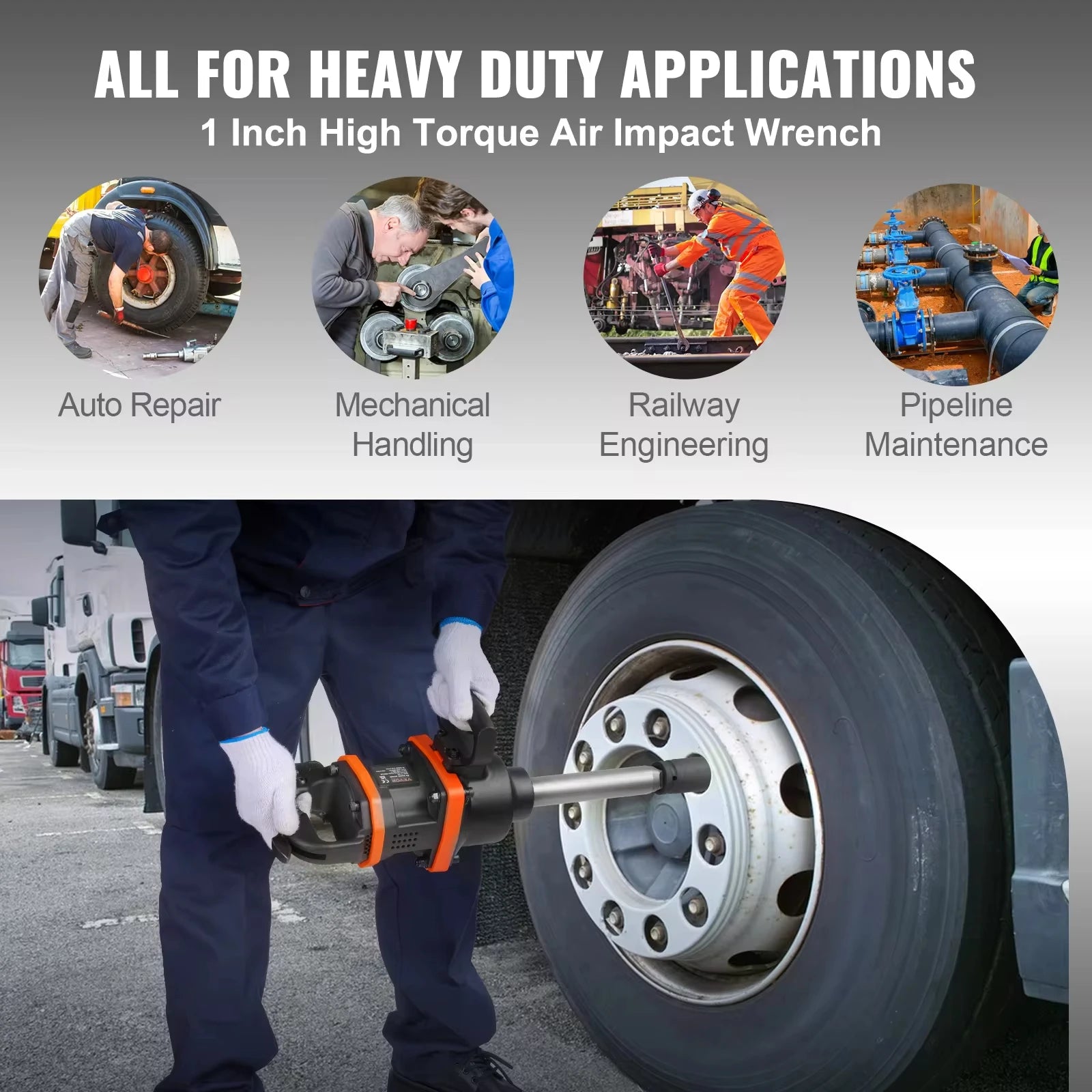 All for Heavy Duty Use: Tightening and loosening bolts, lug nuts and rusted fasteners for agriculture machine, truck, boat, structure and other industries applications for heavy machinery owners and professinal mechanics.