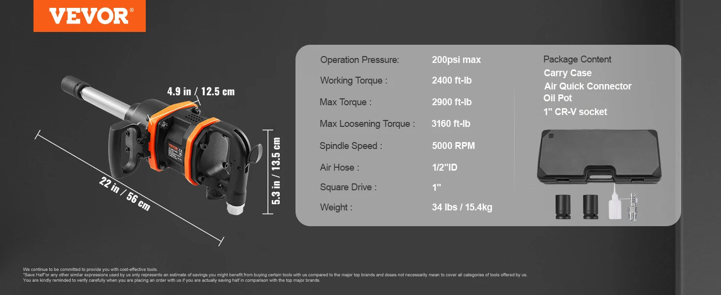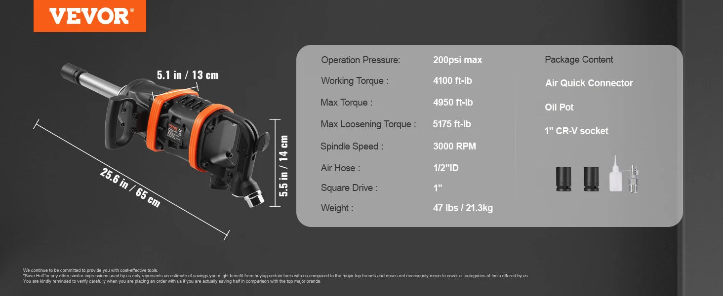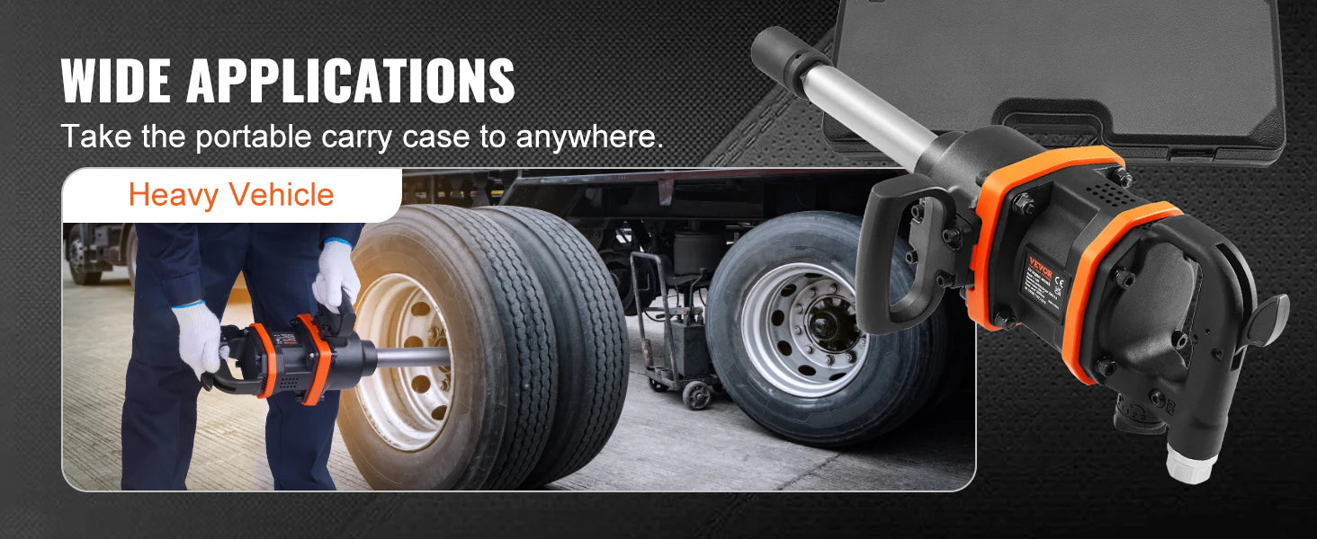 Beast Performance: Deliver up to 2900 foot-pounds high torque output and the breakaway torque even reaches 3160 ft-lbs, more powerful air impact wrench to tackles heavy duty vehicle applications, like heavy truck, bus, and tractor tires.