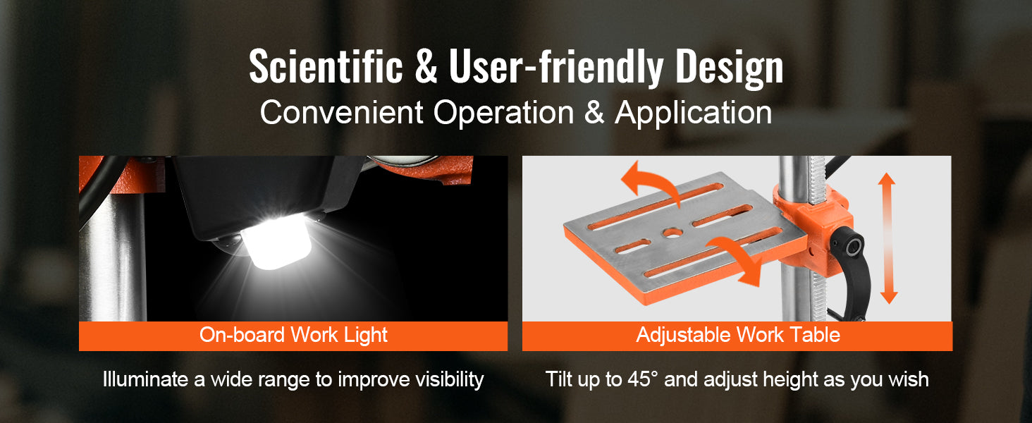 - Excellent Durability: The bench top drill press variable speed has a perfect heat dissipation system, dissipating heat quickly and operating for a longer time, effectively extending the machine's life.