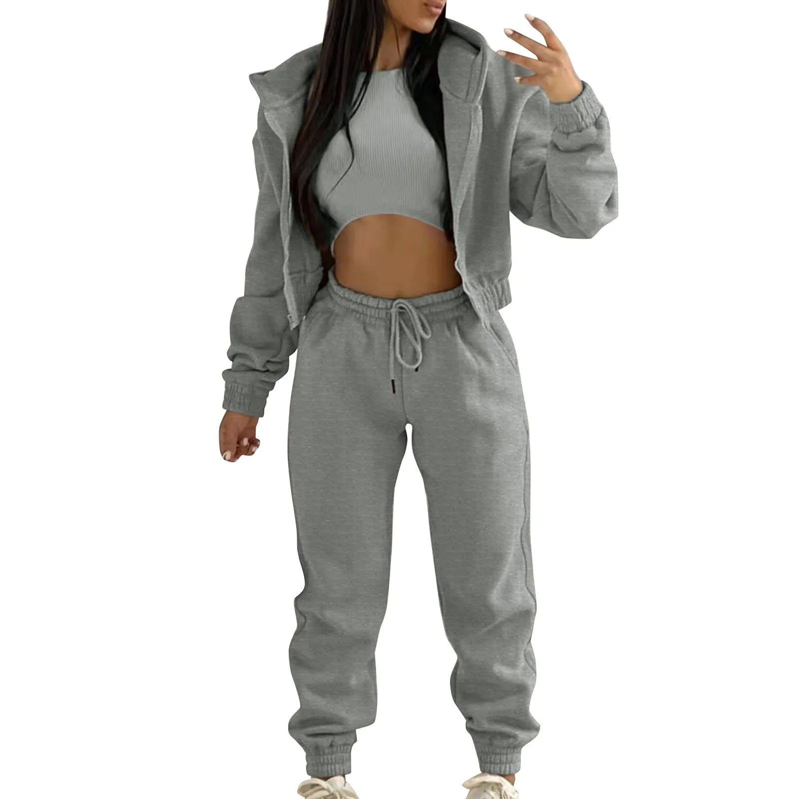 Women's Casual Tracksuit Autumn And Winter Top Vest Pant Set Fashionable Solid Color Zipper Hooded Sweatshirt Pants Casual Three Piece Set